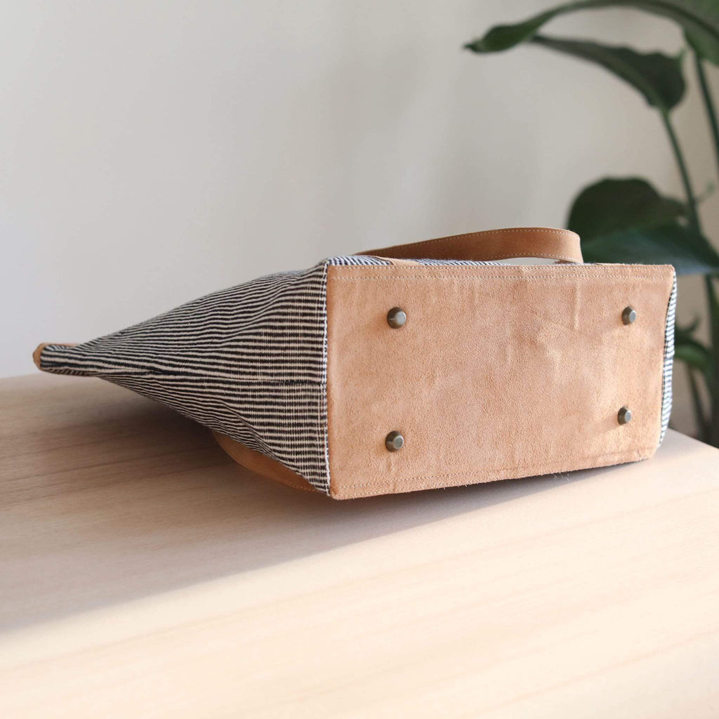This cute black large shoulder tote bag is a wonderful fusion of traditional weaving with modern style. It is handmade ethically by a social enterprise called WOVEN in Nepal. The bag is in black color made of handwoven cotton fabric with a real suede leather base, trim, and adjustable straps.